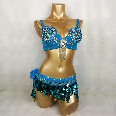 新着レディースビーズベリーダンスコスチュームウェアブラベルトセットセクシーなレディースベリーダンスカーニバルコスチュームベリーダンス服